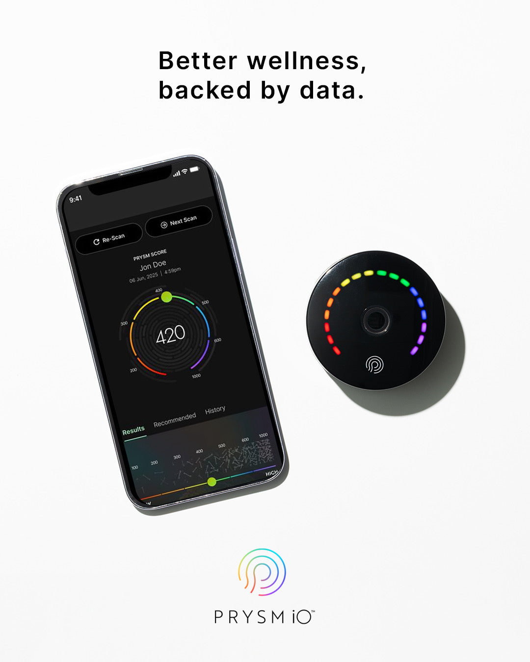 Prysm iO™ is a cutting-edge wellness measurement tool that: